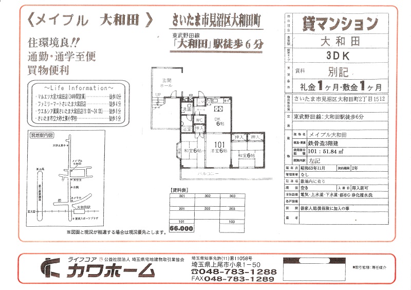 | 所在地 | 埼玉県さいたま市見沼区大和田町2丁目1512 メイプル大和田101 |